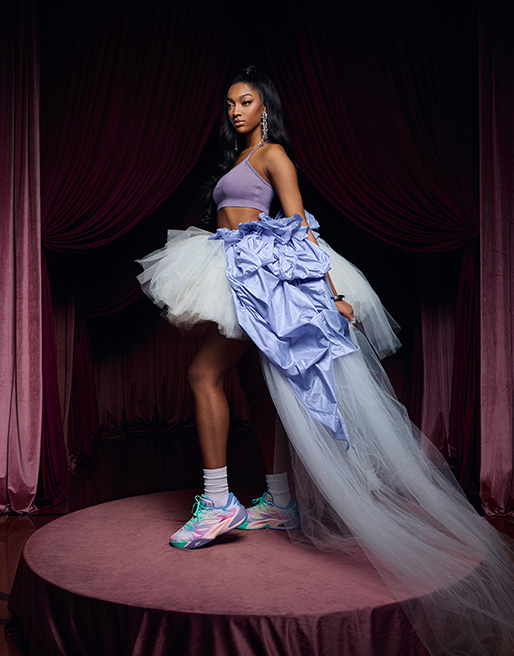 ANGEL REESE (エンジェル・リース) 初のシグネチャーモデルとして、彼女のコート内外におけるダイナミックなスタイルを具現化した一着。通気性に優れたメッシュパネルと安定性を高めるTPUサポートを融合し、ミッドソールには反発性に優れた窒素注入フォーム「SuperFloat」と、エネルギーリターンを最大化するERSテクノロジーを搭載。